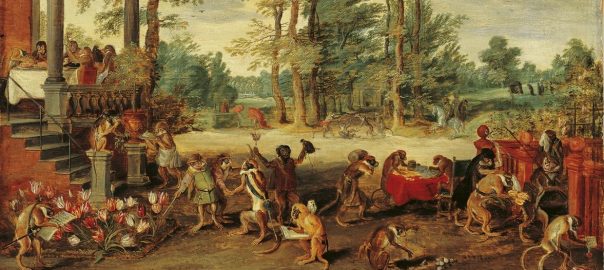 “Tulip mania” in Amsterdam, in the years leading up to 1637, was certainly a real thing, much commented upon at the time. The banner image at the top of the page is a satirical view of it painted by Jan Breughel; Hendrik Pot painted the satire shown here in 1640.