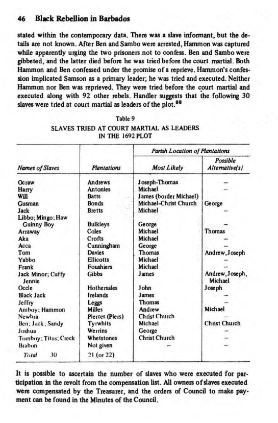 I am happy to be able to use here the words of the pre-eminent Barbadian historian Prof. Hilary Beckles himself, from his 1984 study Black Rebellion In Barbados: The Struggle Against Slavery, 1627-1838, which is freely available in fulltext from that link.
