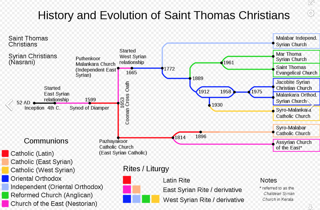 Portuguese-Catholic meddling in the affairs of the Kerala Christians led to centuries of further splits as this diagram shows: