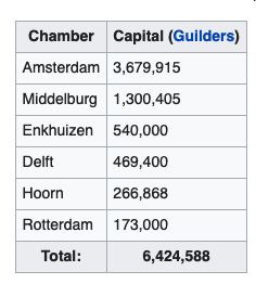 The six chambers raised the start-up capital of the Dutch East India Company [as indicated in the table]: