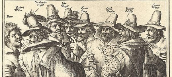 (The banner at the top of this page is an engraving of “Guido” Fawkes and eight other key participants in the plot.)