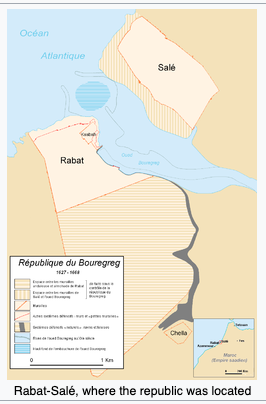 So in 1619, Janszoon, now calling himself Admiral Murat Reis took a bunch of his followers to Salé, just north of Rabat on the Atlantic coast of today’s Morocco, where he established a land-base for his activities and called it the Republic of Salé. (Many of the people who lived there already were Moriscos who had earlier fled from Spain.)