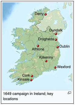 The massacre of the garrison in Drogheda, including some after they had surrendered and some who had sheltered in a church, was received with horror in Ireland and is used today as an example of Cromwell’s extreme cruelty…