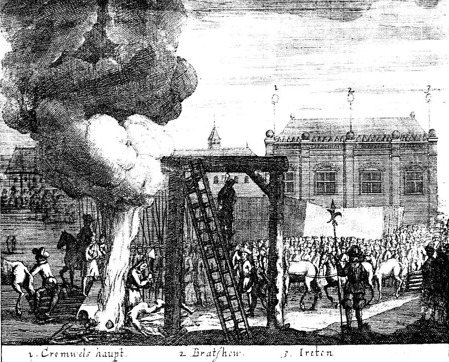 He set out for England from Scheveningen, arrived in Dover on 25 May 1660 and reached London on 29 May, his 30th birthday. Although Charles and Parliament granted amnesty to nearly all of Cromwell’s supporters in the Act of Indemnity and Oblivion, 50 people were specifically excluded. In the end nine of the regicides [judged responsible for the execution of Charles I] were executed: they were hanged, drawn and quartered; others were given life imprisonment or simply excluded from office for life. The bodies of Oliver Cromwell, Henry Ireton and John Bradshaw were subjected to the indignity of posthumous decapitations…