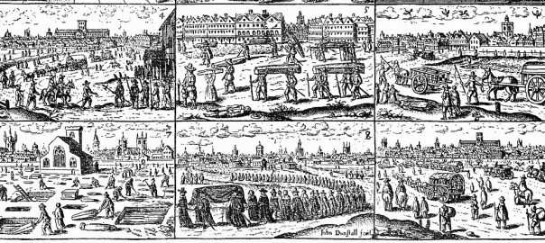 The banner image above is six panels from a nine-panel representation of life in London during the Great Plague.