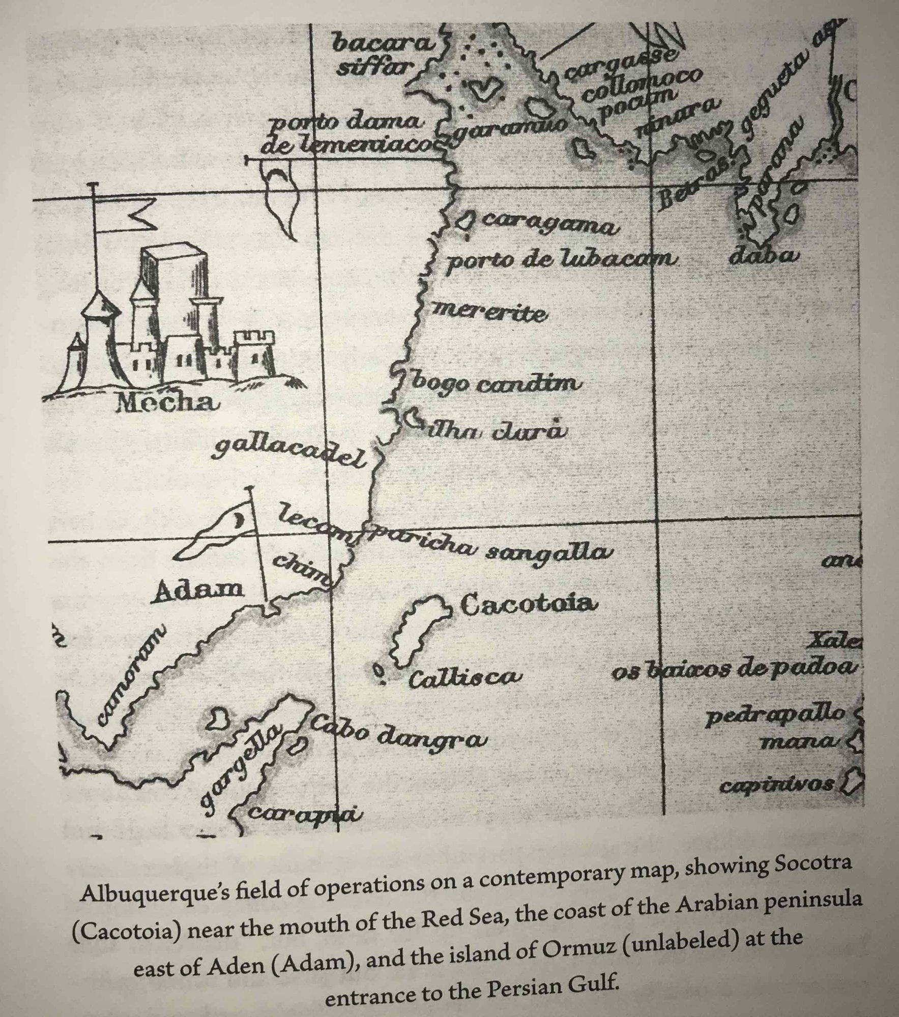 Anyway, Crowley tells us (p.170) that the new instructions sent with the 1506 sailing specified that this expedition should guard the mouth of the Red Sea and capture Muslim cargo ships, as before, but should also “establish treaties in places that seem useful. such as Zaila, Barbara, and Aden, also go to Ormuz, and to learn everything about these parts.”