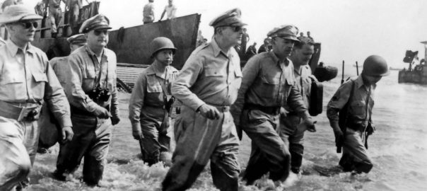 William Manchester himself had fought as a Marine in the Pacific in World War II and seems to have had a fairly strong appreciation of military strategy. As for MacArthur, after the Japanese attack on Pearl Harbor in December 1941 brought the United States into the War, he was appointed Supreme Allied Commander for the South-West Pacific. His naval counterpart for the rest of the Pacific was Adm. Chester Nimitz. During World War I, MacArthur had fought in France, and had seen how the U.S. and Allied forces used amphibious operations there. In World War II, especially along the islands and land-masses that rimmed the Western Pacific, the challenge was, in Churchill’s felicitous phrase, to be able to plan and execute triphibious operations, which would see the new air forces well integrated into the planning for the land and maritime forces.