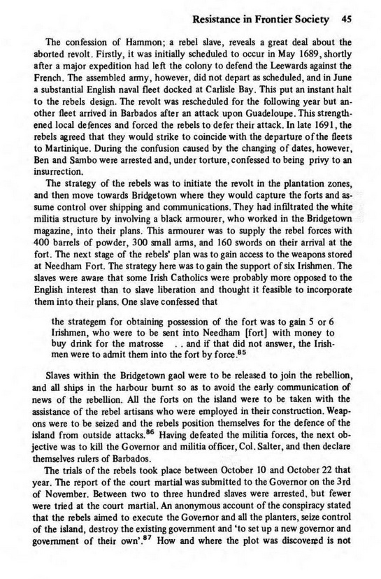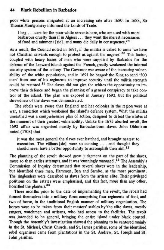 I am happy to be able to use here the words of the pre-eminent Barbadian historian Prof. Hilary Beckles himself, from his 1984 study Black Rebellion In Barbados: The Struggle Against Slavery, 1627-1838, which is freely available in fulltext from that link.