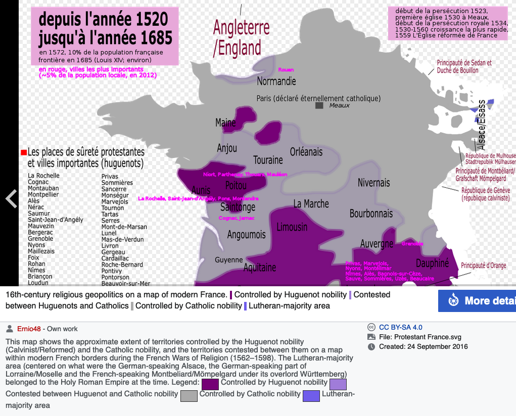 Map of Huguenot areas in France