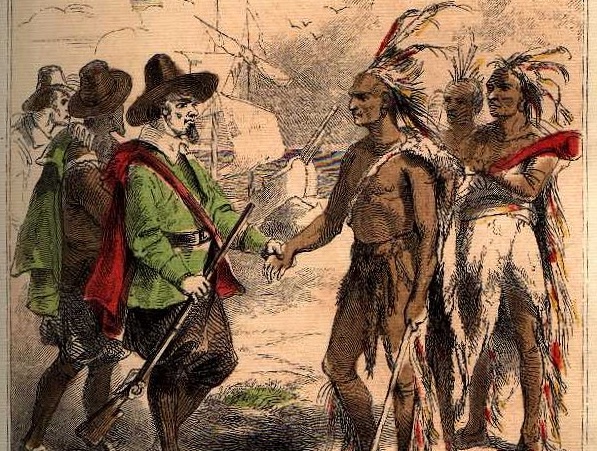 Meeting with Samoset, cropped April 10, 2021Full resolution (597 × 451) ← Previous Next → Samoset meets with settlers