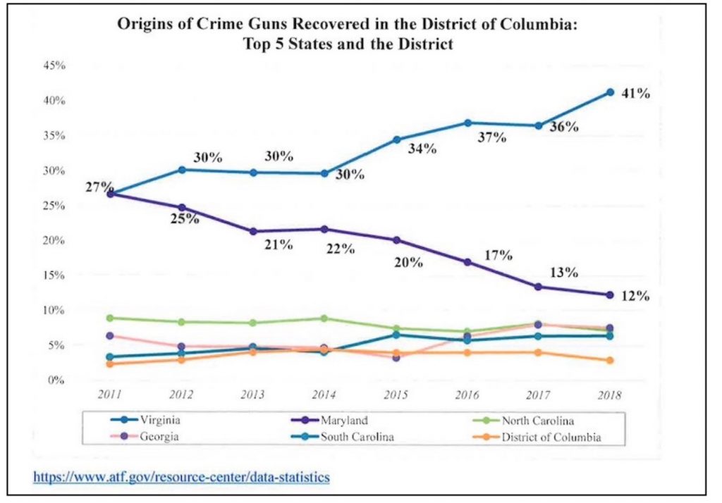 - Jan. 13, 2020 news report (WUSA9) on Mayor Bowser’s letter to Virginia legislative leaders about VA-origin guns pouring into District. bit.ly/2RqL130 It includes this graphic: